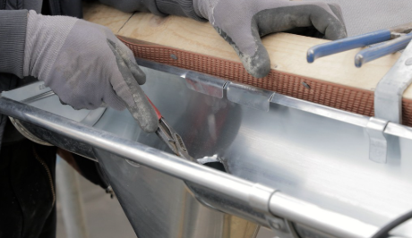 Pour la rénovation du toit terrasse, pose deouttières et dessous de toit au bureau.